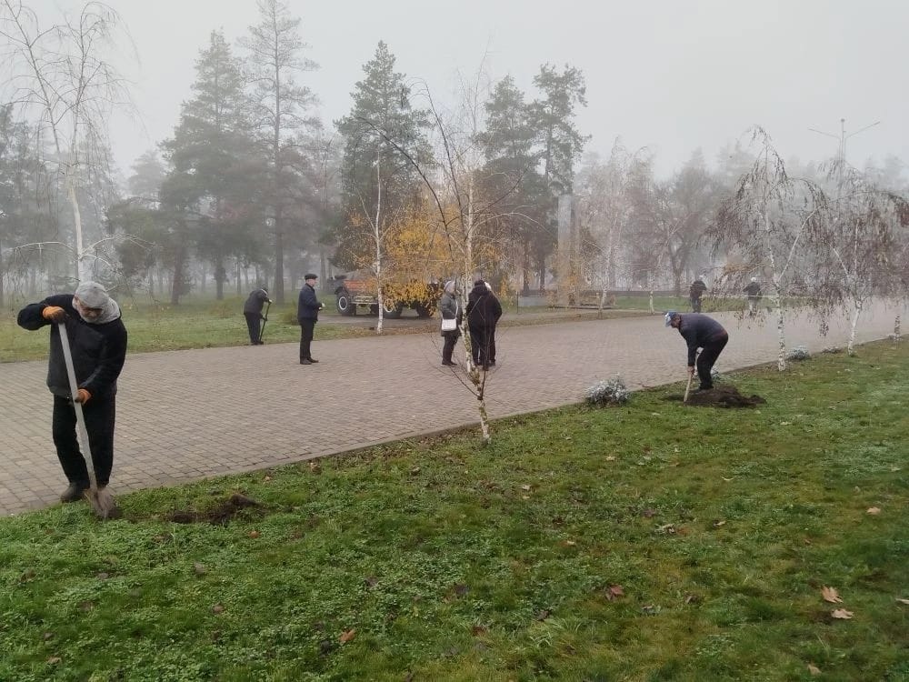 В Абинске партийцы высадили кусты и деревья в городском парке