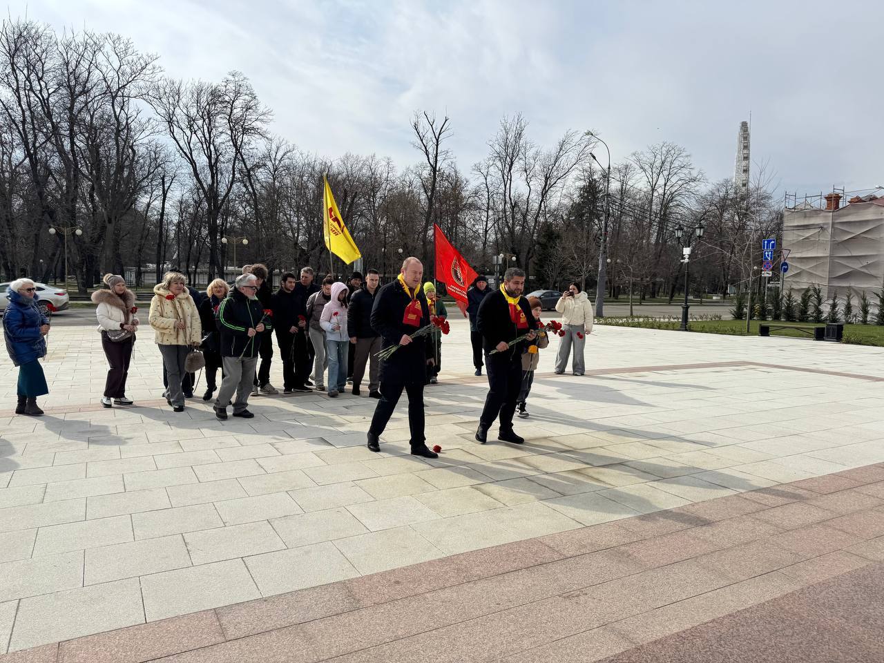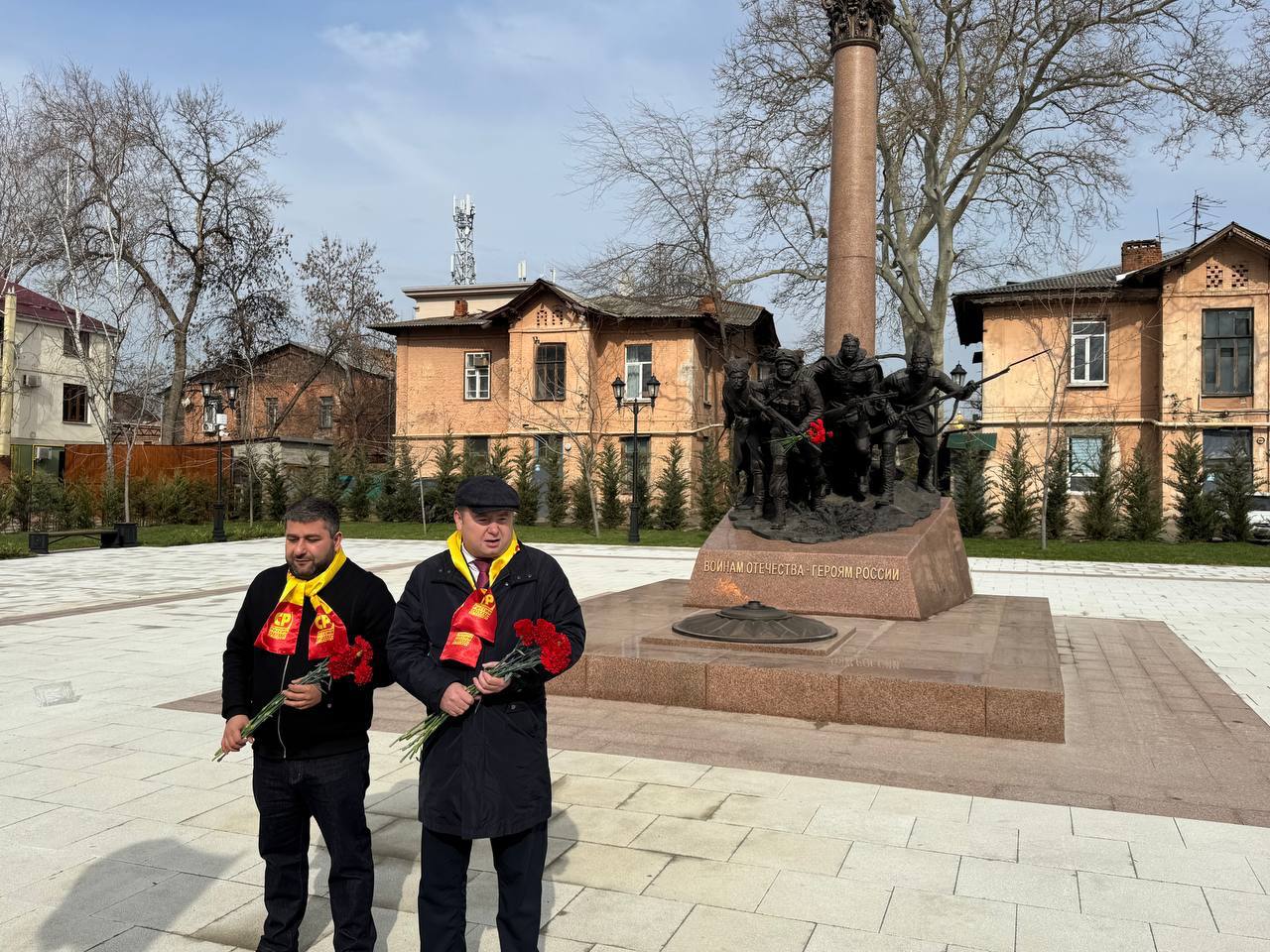 В День защитника Отечества руководитель фракции СПРАВЕДЛИВАЯ РОССИЯ в Законодательном Собрании Краснодарского края Денис Хмелевской вместе с руководителем фракции СР в городской Думе Краснодара Христофором Айвазовым, активистами и сторонниками партии возложили цветы к мемориалу воинам Отечества – Героям России.